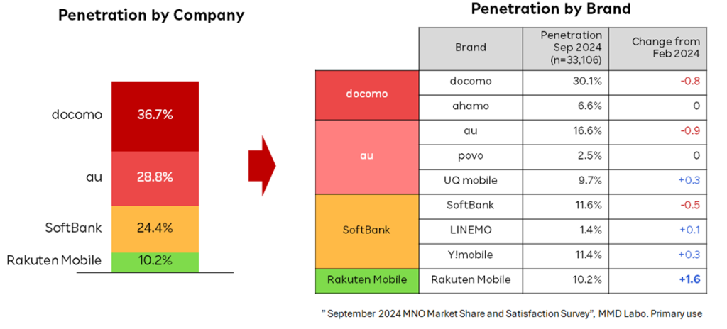 ” September 2024 MNO Market Share and Satisfaction Survey”, MMD Labo (Japanese): https://mmdlabo.jp/investigation/detail_2372.html