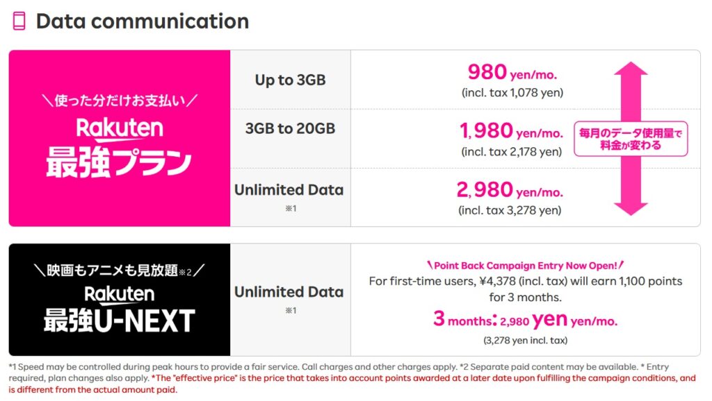 Details of Rakuten SAIKYO Plan and Rakuten SAIKYO U-NEXT