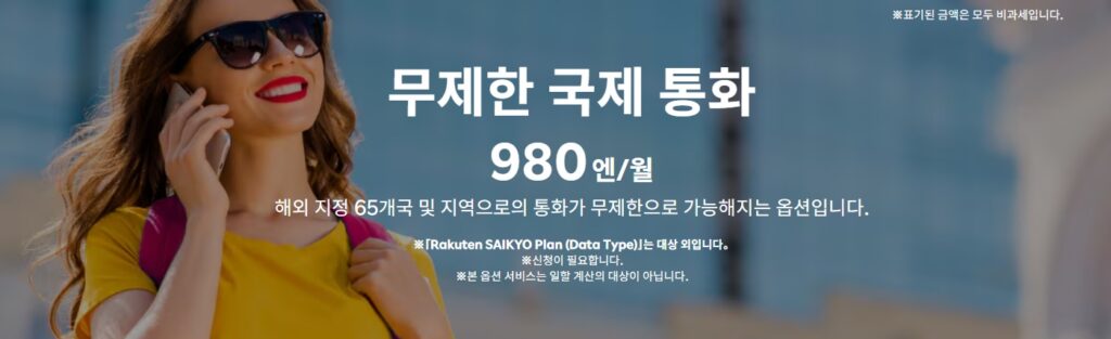 공식 페이지: https://network.mobile.rakuten.co.jp/service/international-unlimited-talk/