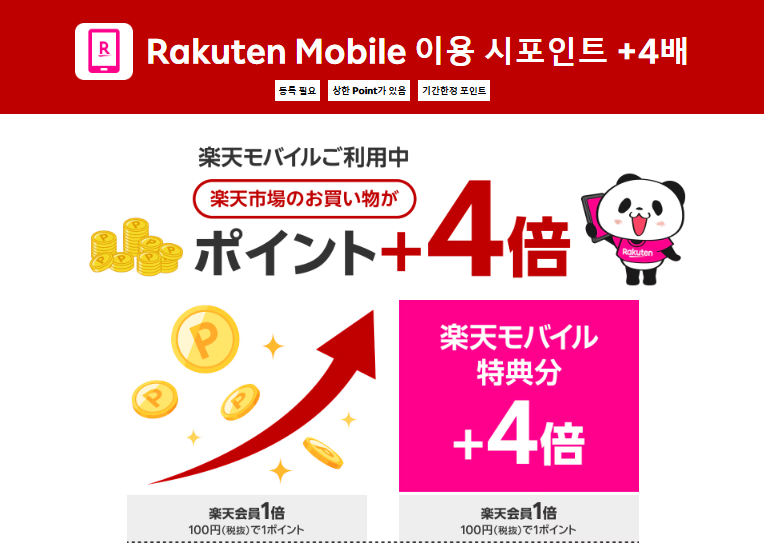 이들을 합치면 일반 포인트 1배 + 라쿠텐 모바일 관련 최대 4배 = **총 최대 5배**의 포인트를 획득할 수 있습니다!