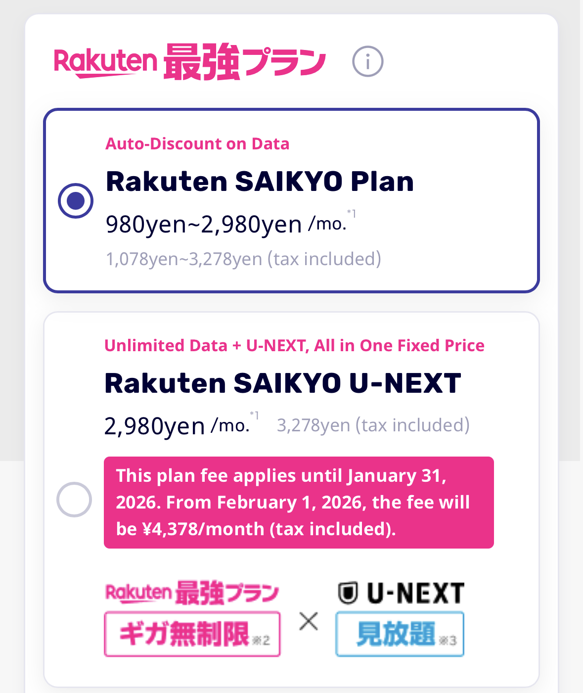 ※ 동영상 스트리밍 서비스인 라쿠텐 사이쿄 U-NEXT 요금제를 추천하며, 매우 합리적인 가격입니다.