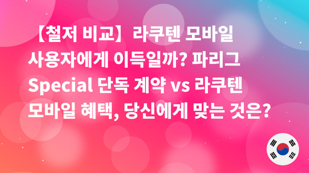 ※ 본 기사의 정보는 2026년 4월 기준입니다. 파리그 Special의 서비스 내용, 요금, 라쿠텐 모바일 혜택 조건은 변경될 수 있습니다. 반드시 파리그 Special 및 라쿠텐 모바일의 공식 웹사이트에서 최신 정보를 확인해 주세요.