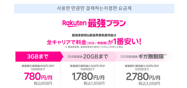 사이쿄 세이슌 와리 적용 조건은 22세 이하이며 라쿠텐 모바일의 “Rakuten 최강 플랜”을 계약하는 것뿐입니다. 번거로운 학생증 제시 등도 필요 없어 간편하게 적용됩니다.