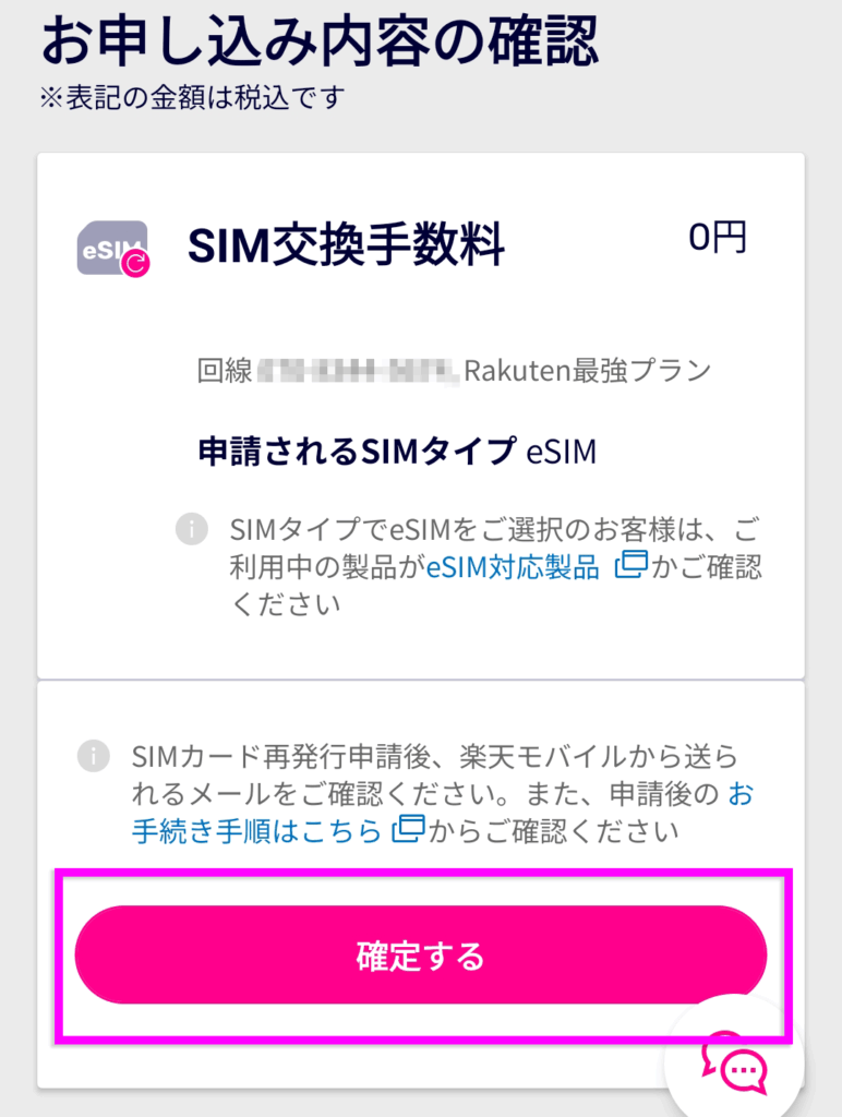 お申し込み内容と回線番号を確認し、問題なければ 「確定する」 をタップします。