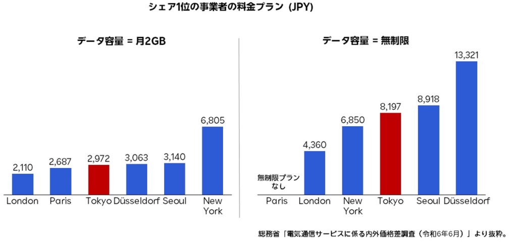 「電気通信サービスに係る内外価格差調査(令和6年6月)」:https://www.soumu.go.jp/main_content/000951799.pdf