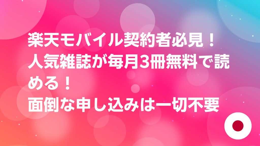 そう思っているあなたに朗報です!楽天モバイル契約者なら、なんと人気雑誌が月3冊無料で読めちゃうんです。