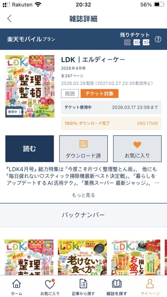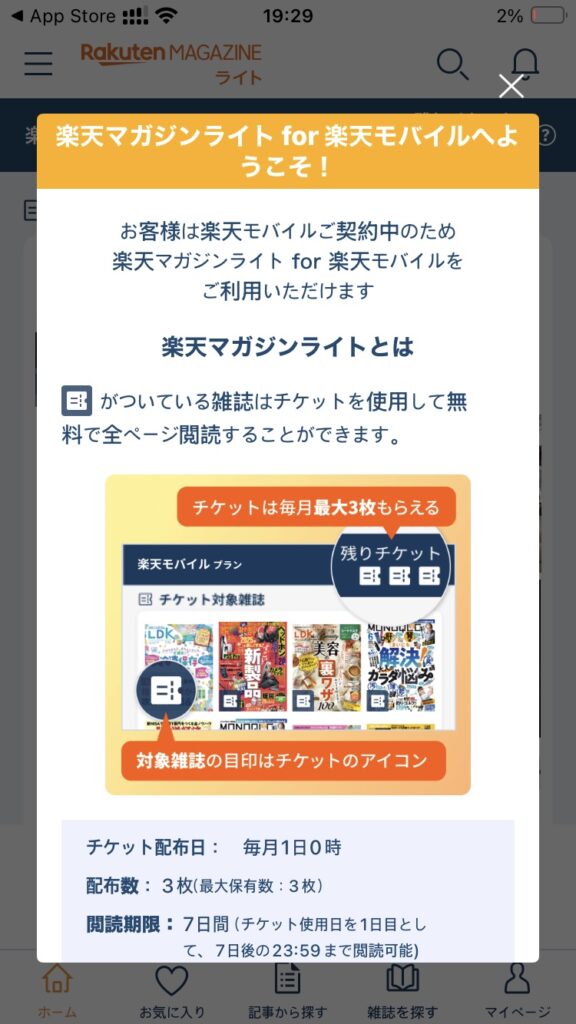 試してみた結果、本当に楽天モバイルユーザーなら好きな雑誌が無料で読めます。