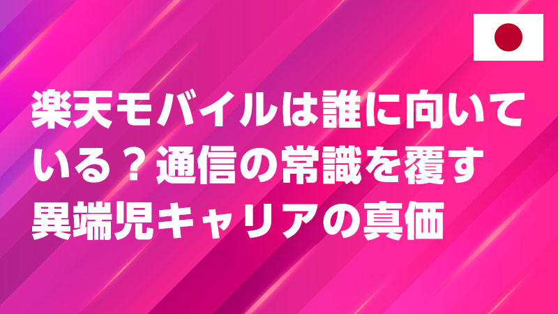 近年、携帯キャリア業界に彗星のごとく現れ、その革新的な料金プランと独自のネットワークで注目を集める「楽天モバイル」。しかし、「本当に繋がるの?」「安かろう悪かろうじゃないの?」といった疑問を持つ方も少なくないでしょう。本記事では、楽天モバイルが一体どのようなユーザーに最適なキャリアなのかを、その特徴を深掘りしながら徹底解説します。通信費を賢く抑えたい方、新しいサービスに興味がある方は必見です。