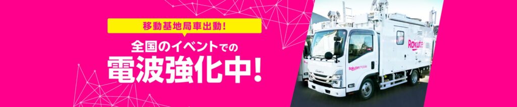 楽天モバイルは、花火大会や音楽フェスなどの多くの人が集まる全国各地のイベントに、移動基地局車を出動し、電波強化対策に取り組んでいます。