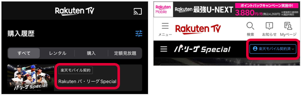 楽天モバイルを契約し開通後、すぐに「Rakuten パ・リーグ Special」を視聴できるわけではありません。視聴権が付与されるまでに、通常3~4日程度かかることがあります。契約した翌日にパ・リーグの試合を観ようと思っても、視聴できない可能性が高いのでご注意ください。視聴権が付与されると、Rakuten TVのページやアプリで確認できるようになります。