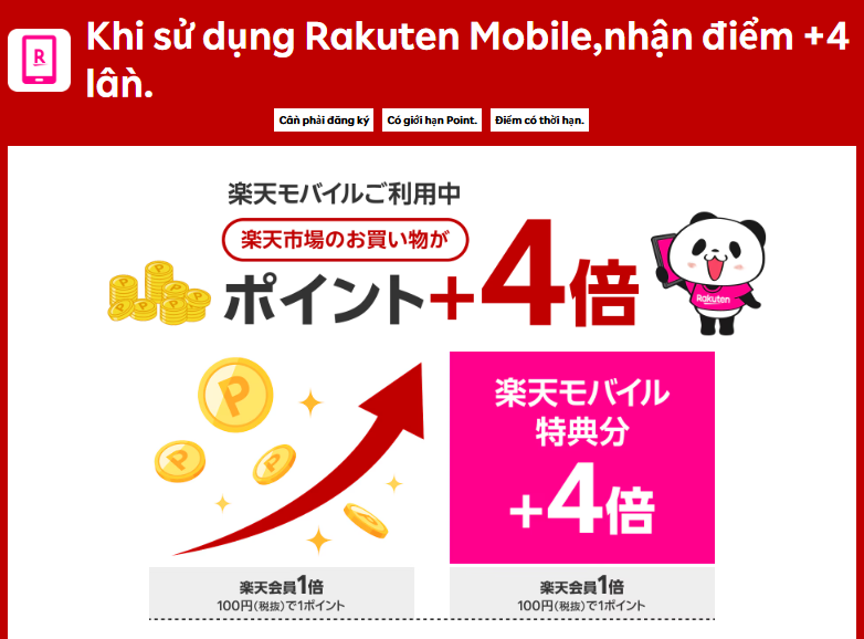 Kết hợp những điều này, bạn sẽ nhận được 1 lần điểm thông thường + tối đa 4 lần liên quan đến Rakuten Mobile = tổng cộng lên đến 5 lần điểm!