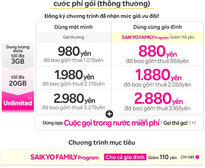 Vui lòng kiểm tra trang web chính thức của Rakuten Mobile để biết thông tin chi tiết về gói cước và các chương trình khuyến mãi mới nhất.