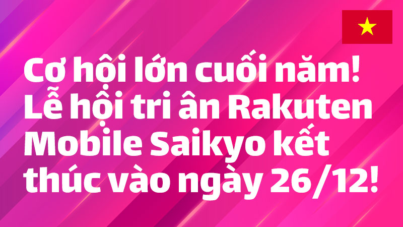 Gửi lời “cảm ơn lớn nhất” đến quý khách hàng đang sử dụng Rakuten Mobile, “Lễ tri ân Saikyo của Rakuten Mobile” đang diễn ra. Từ 10:00 ngày 03/12/2025 (Thứ Tư) đến 09:59 ngày 26/12/2025 (Thứ Sáu), có nhiều ưu đãi về điểm thưởng, mã giảm giá và tài chính, cùng “Ưu đãi đặc biệt” tham gia mỗi ngày 1 lần. Hãy xem danh sách nổi bật của hôm nay!