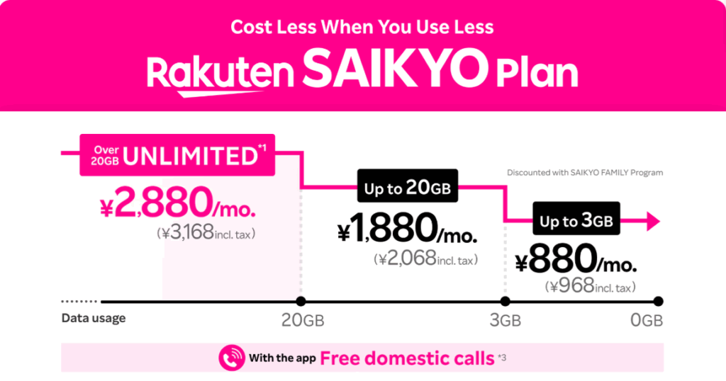 Rakuten 最强套餐(Rakuten Saikyō Plan) — 通话与流量皆无限的基础方案